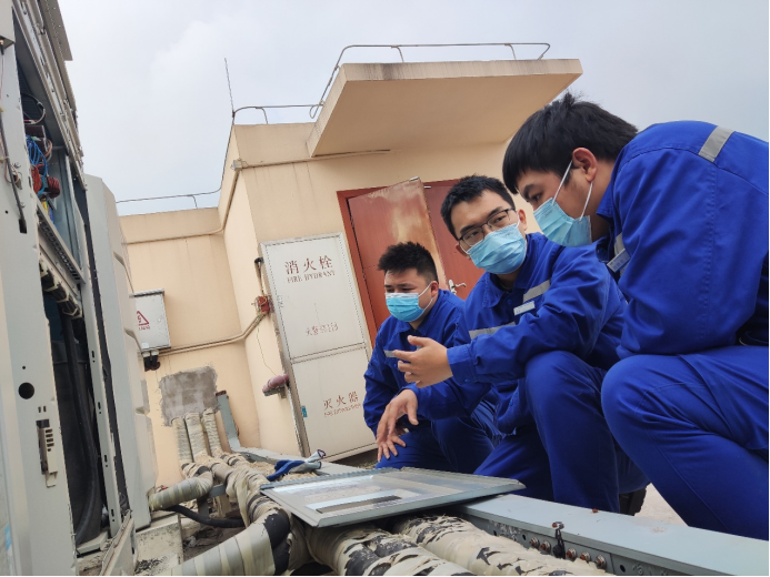 江跳线运营公司维保事业部变电专业员工、团员青年严浩 、龙腾、李靖平坚守岗位,确保生产不停歇