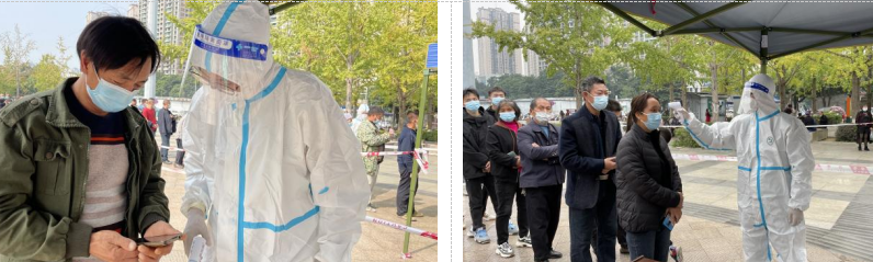 集团本部,审计法务部熊长江积极报名参加江北区保利香雪小区的志愿者服务,多次组织小区人员有序开展核酸检测,主要承担人员引导、秩序维护、排查登记、发放抗原试纸等志愿服务。