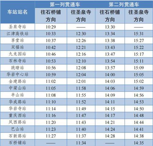 温馨提示:上述运行时刻仅作出行参考,具体以现场实际情况为准。如您错过贯通列车,也可在跳磴站同台换乘5号线。