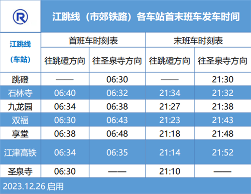 江跳线于2023年12月26日延时运营时间,为保障市民出行,江津区道路运输事务中心结合江津公交运行实际,指导公交企业增开江跳线末班接驳专线公交206,该专线公交兜底保障末班轨道交通换乘,江跳线延时时段其余班次由出租车、网约车保障。