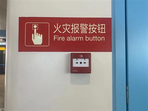 火灾报警按钮位于站厅、站台的墙面上,手掌大小,红色四方形状。当车站发现火情时,视情况需要按下按钮即可进行火灾报警,发出火警信号。