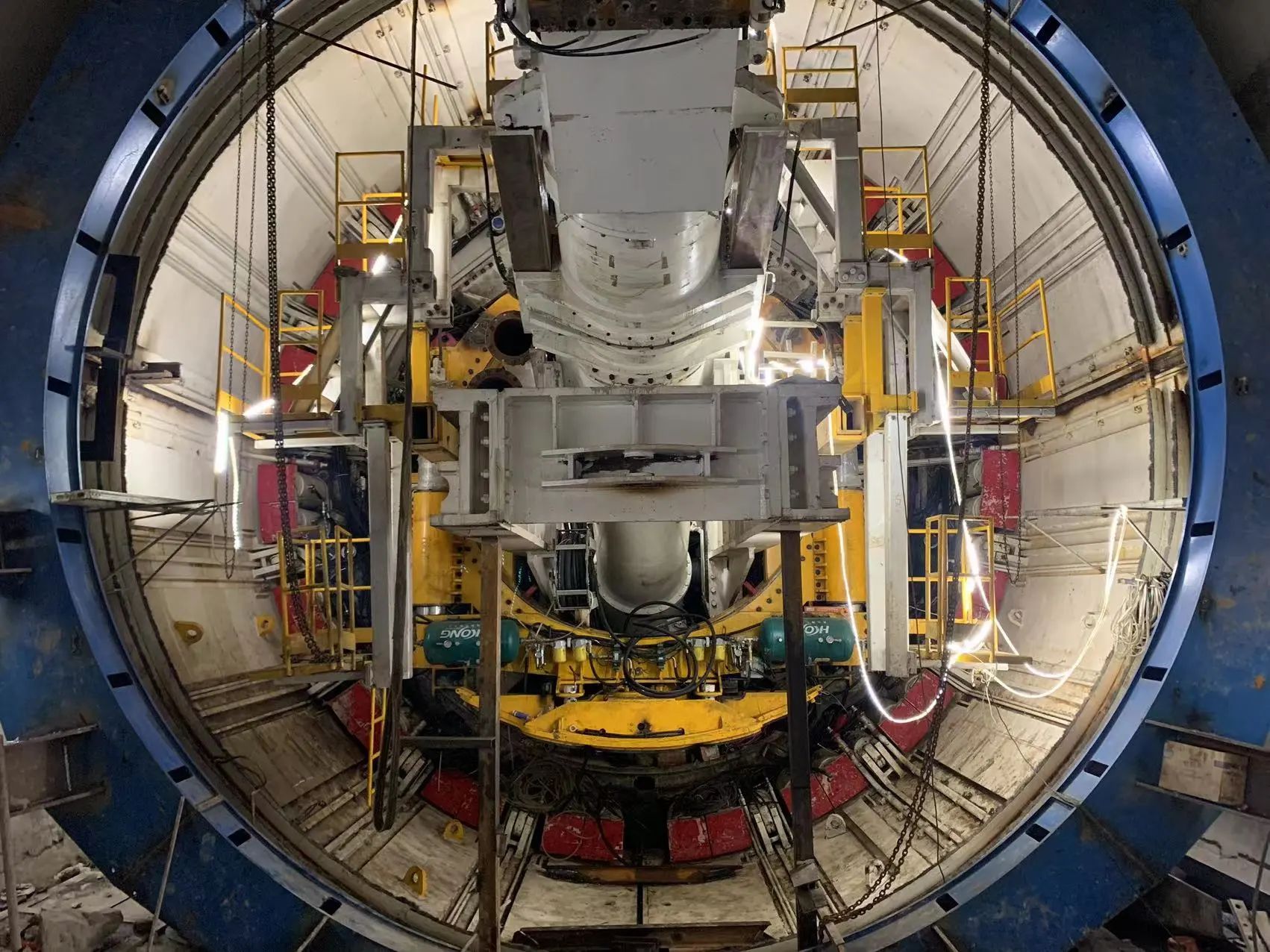 10月30日,轨道27号线穿江隧道始发井,中国中铁技术人员正在进行盾构始发前的检查工作。